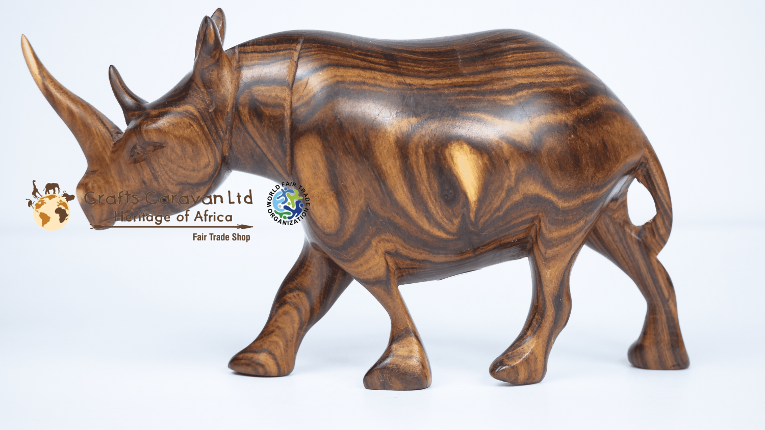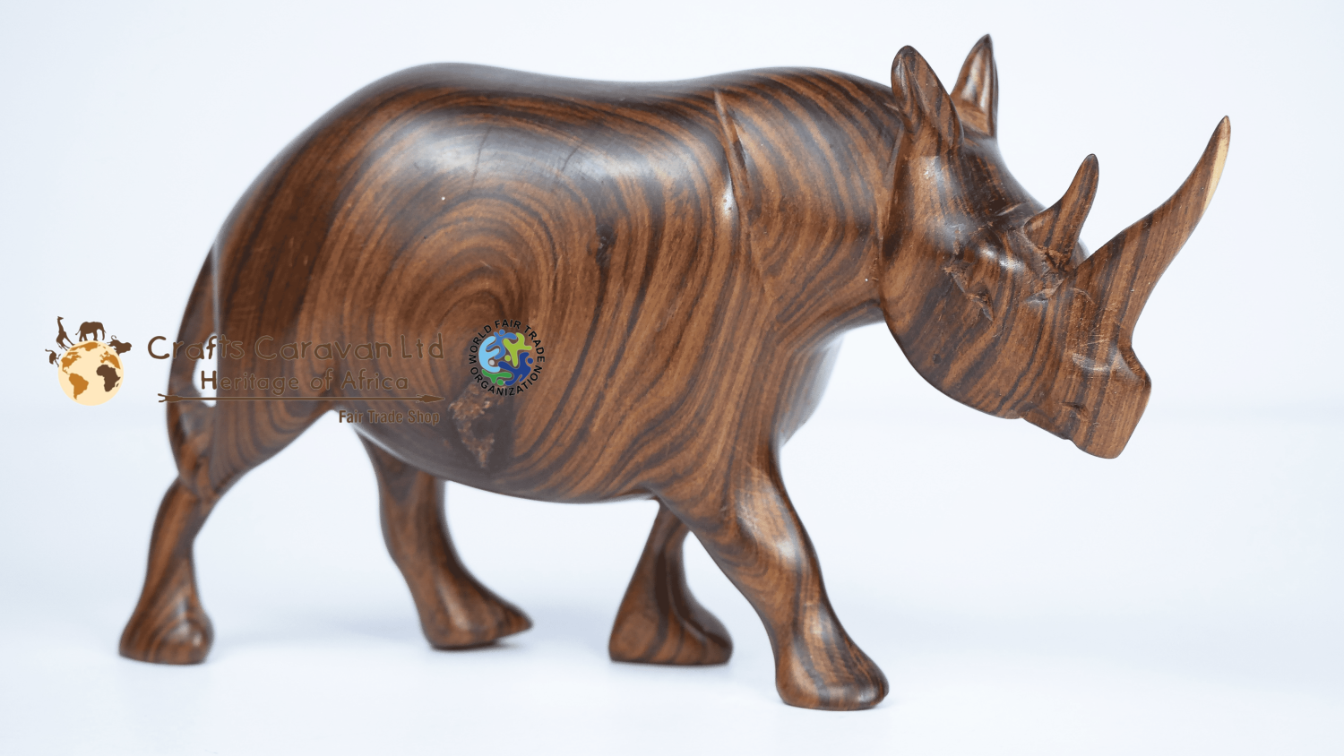 Rosewood carved rhino. This piece was intricately hand-carved in Kenya from a single, sturdy piece of wood. It is a stunning collector's item in every way