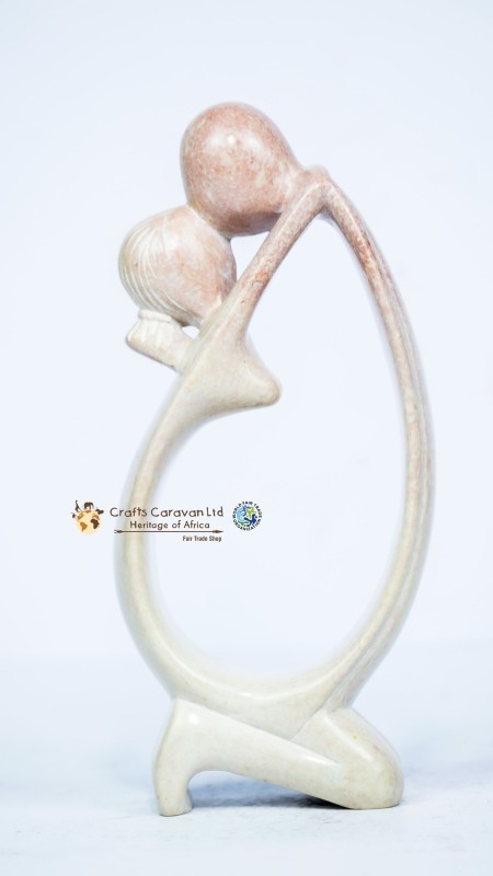Hand-carved from Kisii soapstone, it measures 6 inches. This abstract representation of affection is a