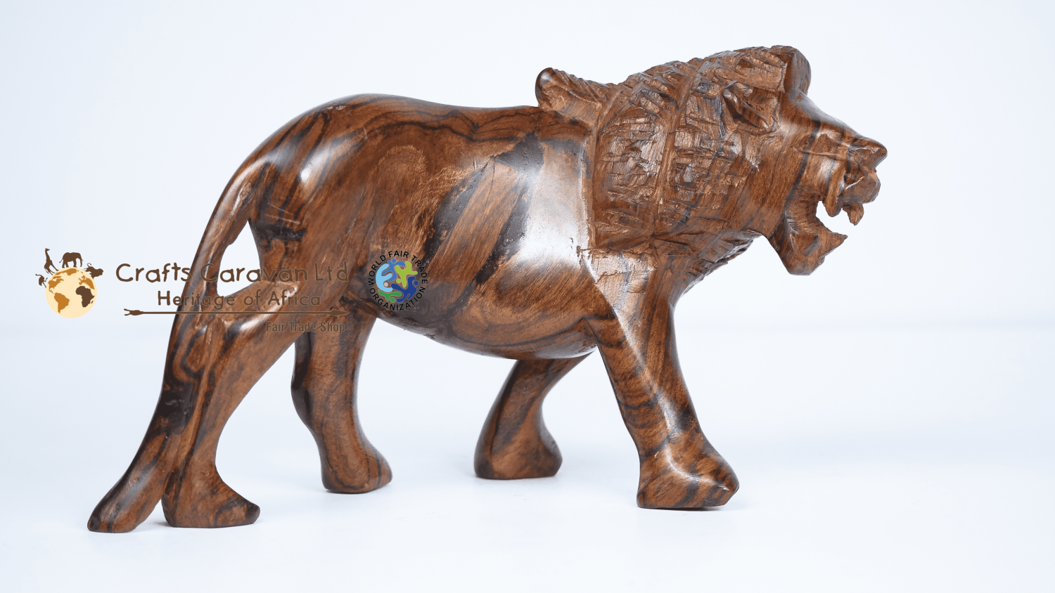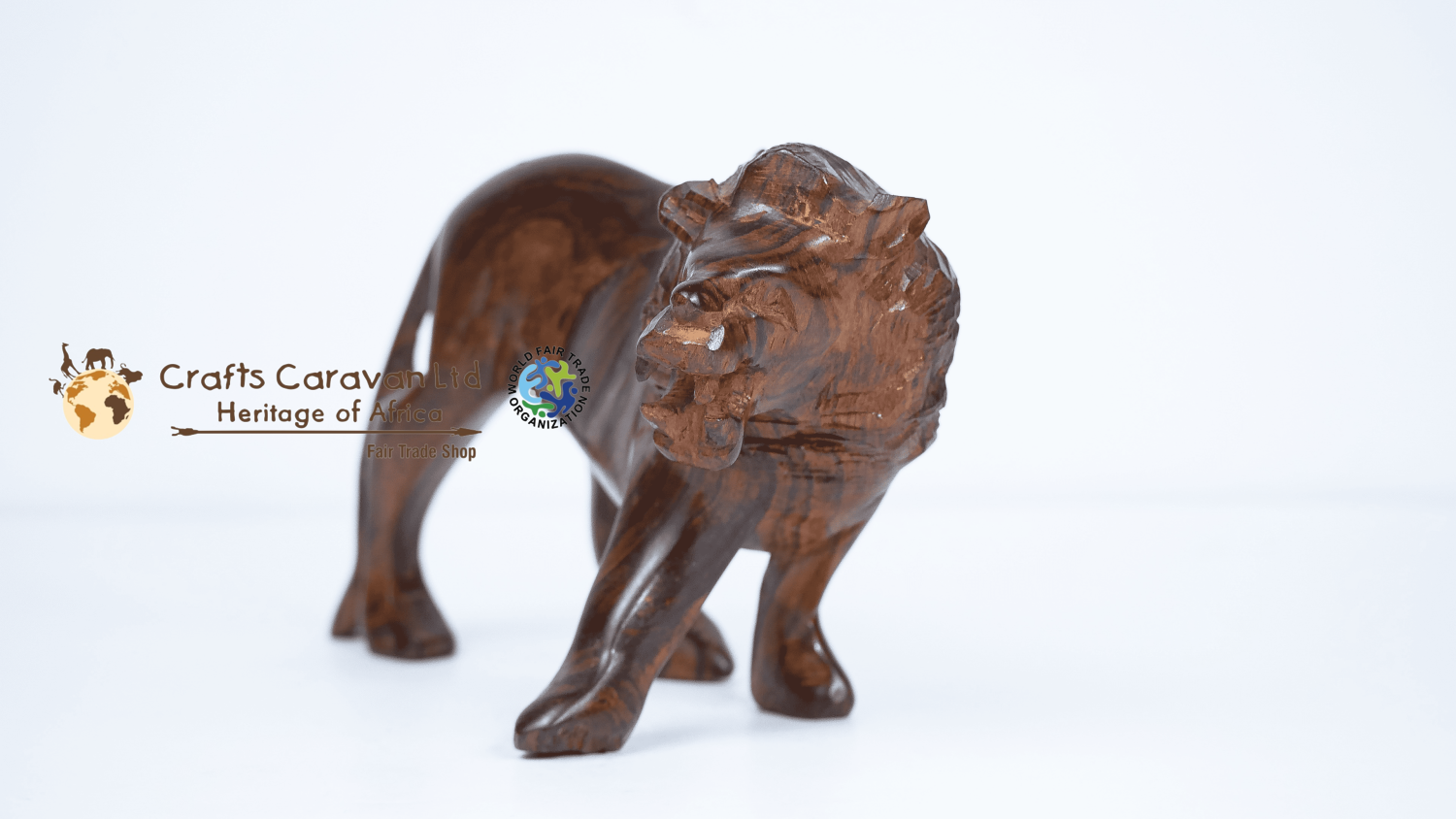 Wooden lion carved from Mahogany. This carved lion from Kenya appears quite tasteful. The carved