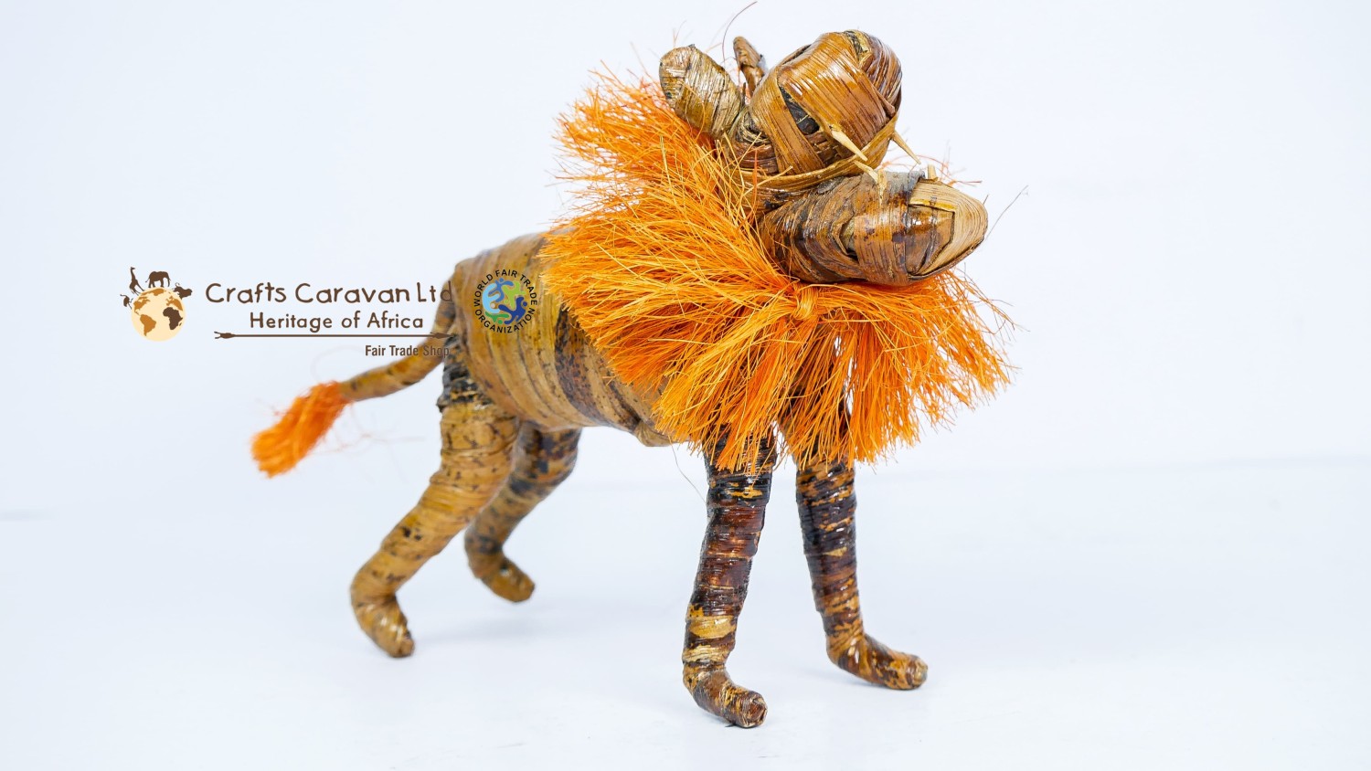 our "Lion Banana Fibre Sculpture." Crafted from banana fibre, this