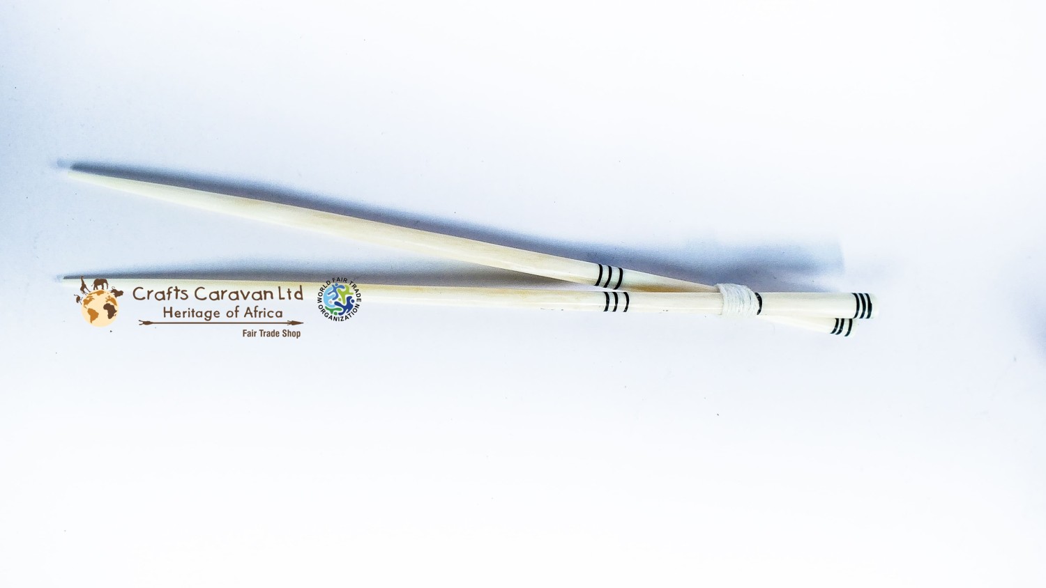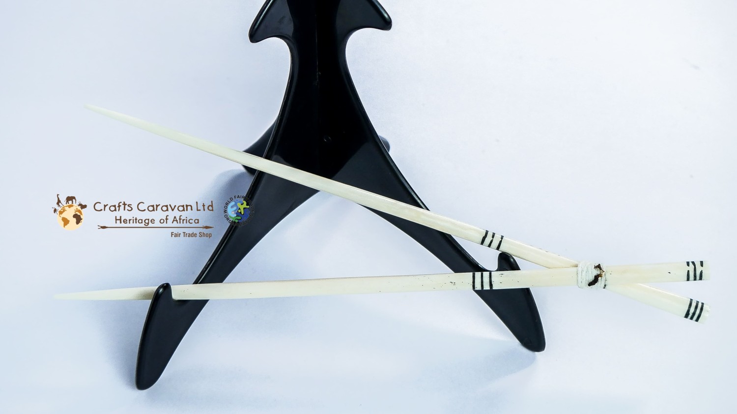 pairs. Handcrafted from bone and horn by Akamba artisans, each pair measures 10 inches in length.