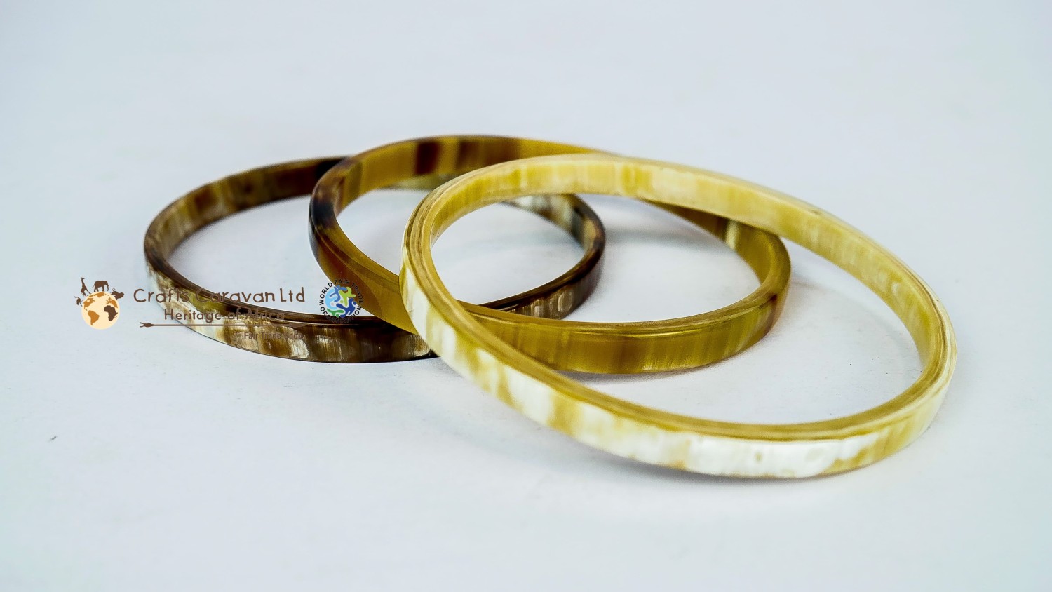 serve as versatile accessories that complement various styles. These bangles are crafted from horn