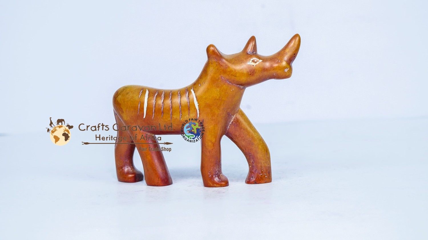 and a distinctive design. A trio of rhino sculptures carved from brown soapstone, symbolizing unity,